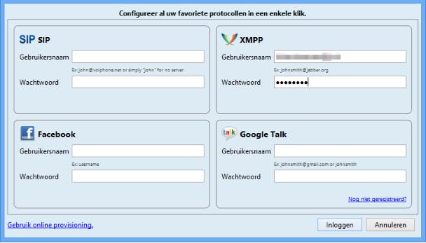 Geef je zojuist aangemaakte Jitsi-naam aan onder XMPP.