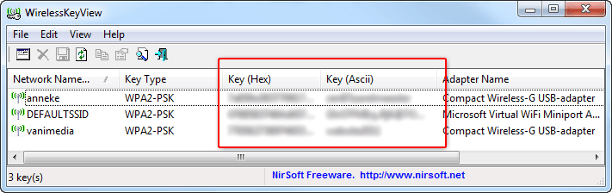 WirelessKeyView toont het wachtwoord van uw draadloze netwerk.