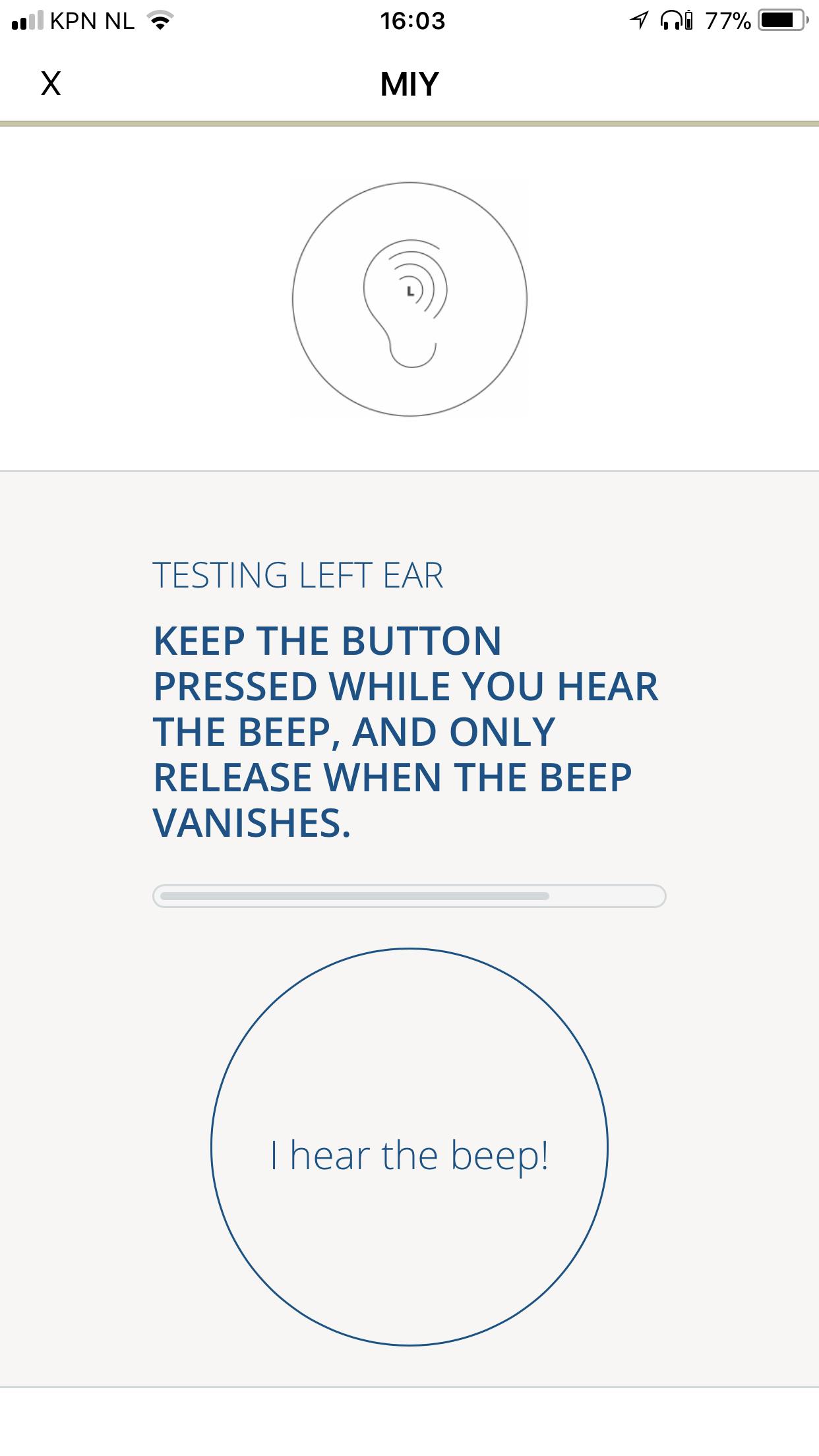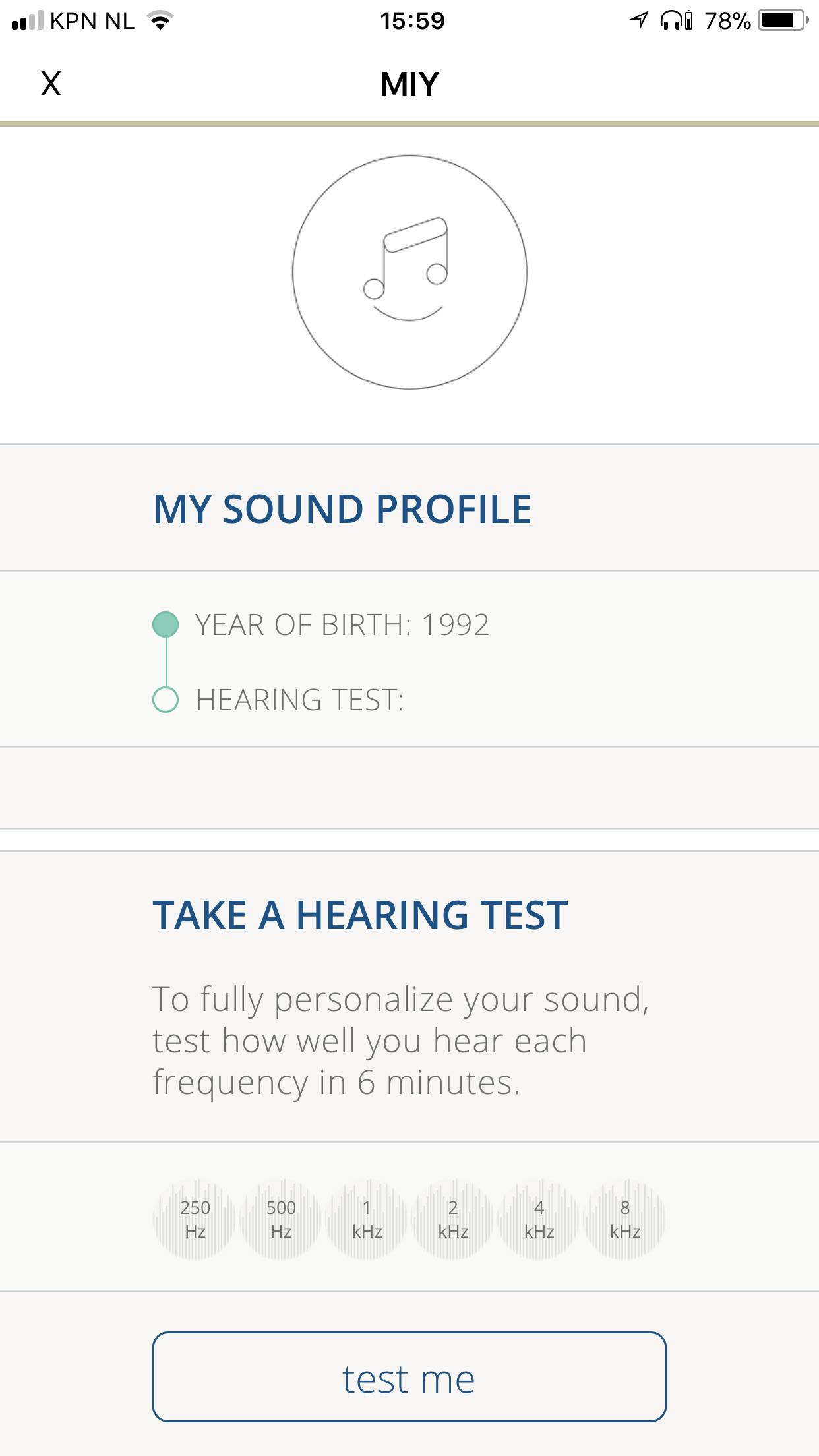 Met de bijbehorende app MIY, wat staat voor Make It Yours, kun je een geluidsprofiel aanmaken. Na het aangeven van je leeftijd kan de app het geluid al voor je optimaliseren. Als je echt een persoonlijk profiel wil, kun je zelfs een gehoortest afleggen. Deze gehoortest wordt per oor afgenomen met behulp van korte piepjes, waarbij je een knop moet inhouden zolang je de piepjes hoort. Zo weet de app welke tonen je wel of niet per oor kan horen. Vooral voor slechthorenden aan één of twee oren is dit een geweldig pluspunt.