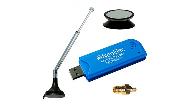 Om de signalen uit de lucht te plukken, heb je een ADS-B-radio-ontvanger nodig, in de vorm van een usb-dongel. Ook een antenne mag uiteraard niet ontbreken. De antenne speelt een belangrijke rol bij Flightradar24. Deze bepaalt immers hoeveel vliegtuigen worden opgemerkt. Voor de radio-ontvanger kiezen we voor de NooElec NESDR Mini 2+. Deze wordt bijvoorbeeld geleverd door Antratek voor circa 30 euro. Bij deze set krijg je een antenne bijgeleverd.