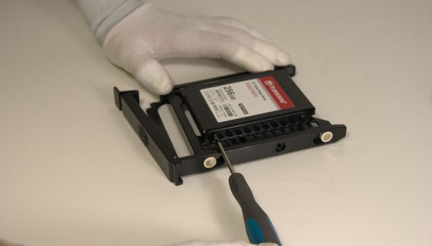2 Schroef de SSD vast in de bracket of de conversiebracket en bevestig deze in de behuizing.