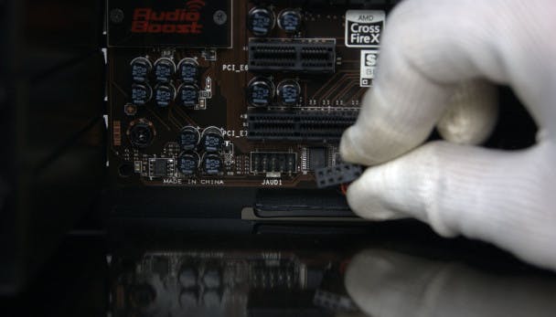 6 Veel behuizingen bieden ook een audio- en microfoon-aansluiting aan de voorkant. Door een dicht gaatje en een ontbrekend pinnetje past deze maar op een manier.