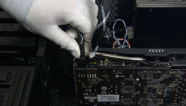 3 Sluit indien noodzakelijk de 6 en/of 8pins-stroomaansluiting(en) aan op de videokaart.