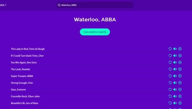 Helaas biedt Spotify die mogelijkheid niet, maar dat wil niet zeggen dat het niet kan. MagicPlaylist is een dienst die precies doet wat we hierboven hebben omschreven. Denk aan je favoriete liedje aller tijden, zelfs als dat van Jan Smit is. Typ de naam van dit liedje in het invoerveld van MagicPlaylist en klik op het resultaat dat verschijnt. Nog geen seconde later verschijnt er een afspeellijst in beeld die je van je sokken zal blazen.