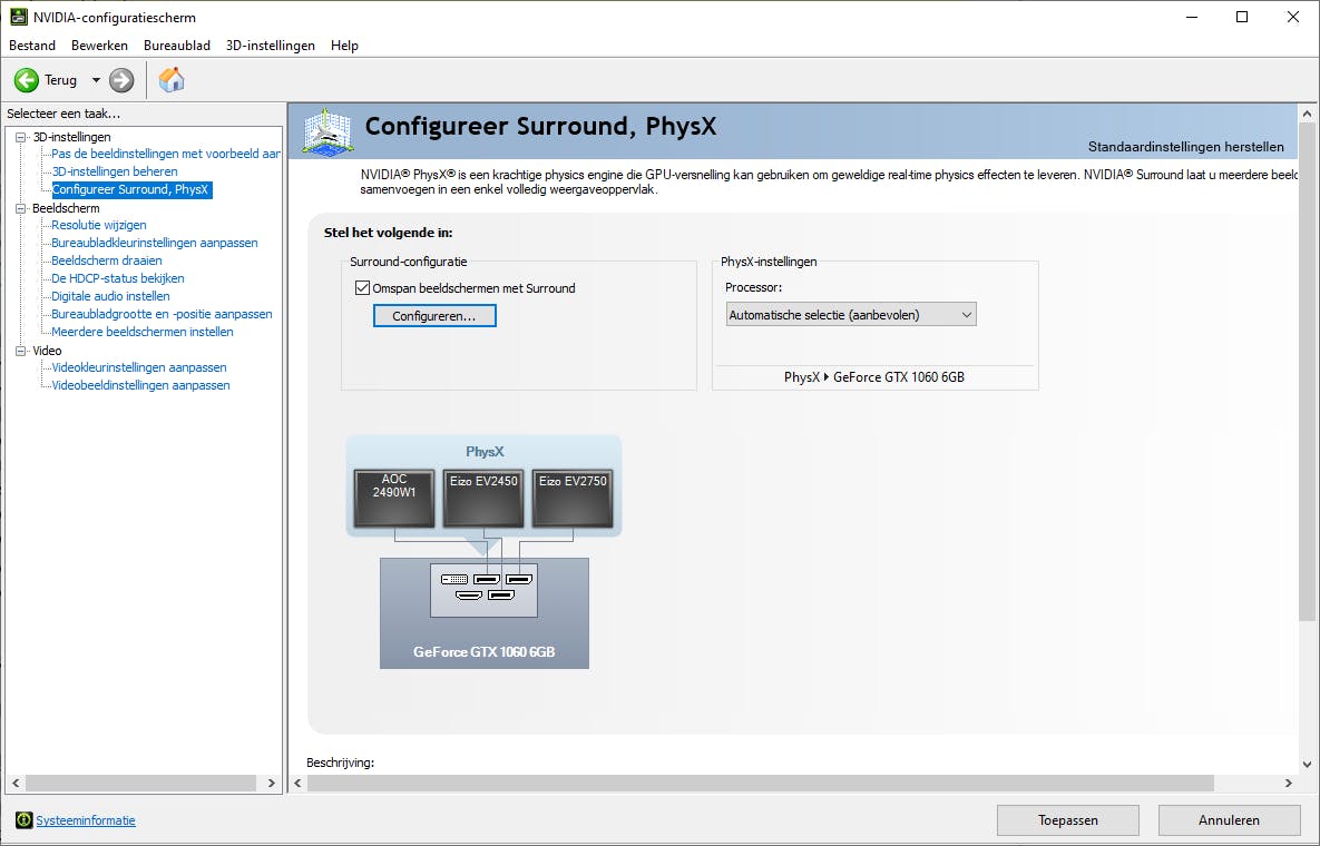 Bij Nvidia heet deze optie Surround. Dit geeft meestal niet het gewenste resultaat. Er treden geometrische vervorming op en de prestaties hollen achteruit, waardoor de beeldkwaliteit wordt teruggeschroefd en landschappen verbleken. Wat je wel kunt doen, is enkele schermen van de cockpit loskoppelen naar een apart venster dat je dan naar een andere monitor kunt verplaatsen. Daarvoor houd je de rechter Alt-toets ingedrukt terwijl je over een scherm beweegt. Druk daarna op het vergrootglas.