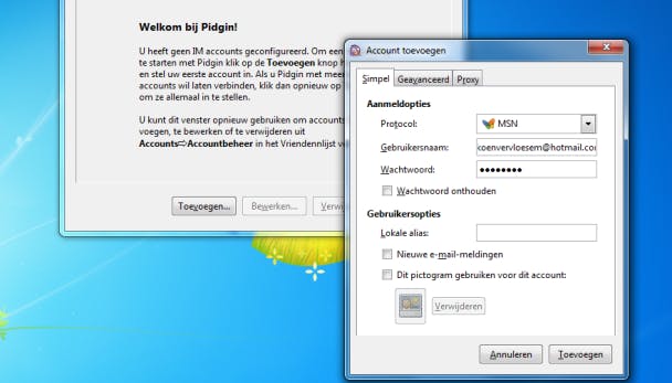 Voeg een chataccount toe in Pidgin.