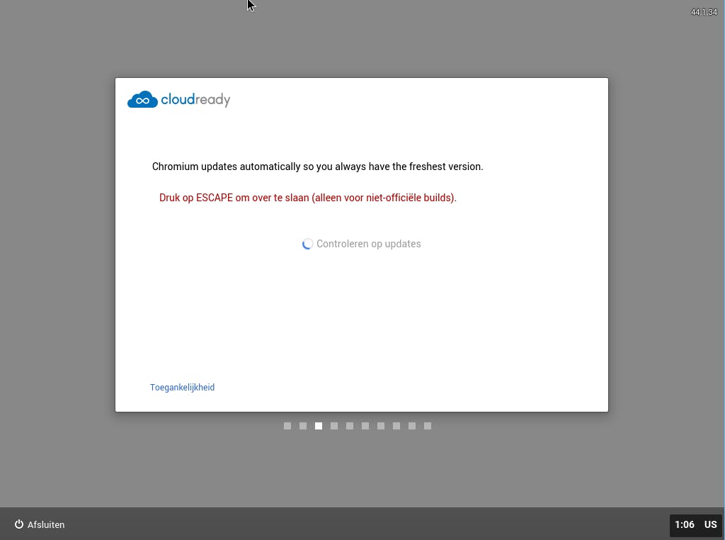 Na het installeren gaat Chromium OS meteen even updaten.