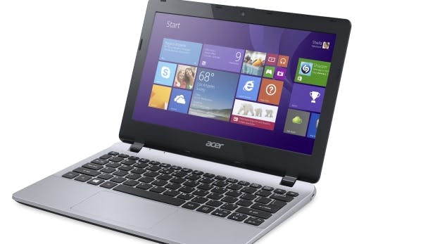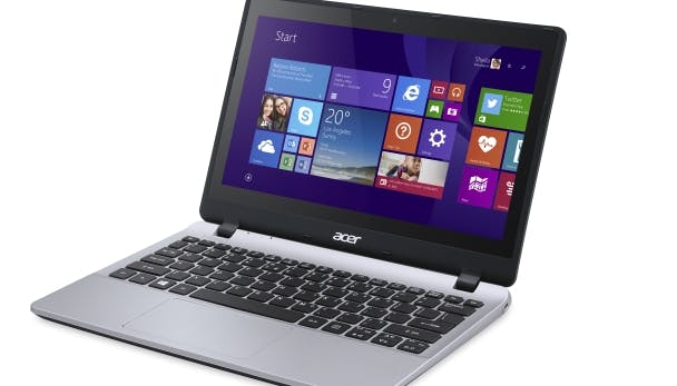 Acers Aspire V 11 lijkt veel op de E 11, met als belangrijkste toevoeging een aanraakscherm. Met de naamgeving van Acers Aspire V 11 is hetzelfde aan de hand als bij zijn broer, je zult hem ook vaak tegenkomen onder de typeaanduiding V3-112P. Ons testmodel was de V3-112P-C7NC. De processor is dezelfde Intel Celeron N2840 dualcore-processor in combinatie met 4 GB RAM. In de V 11 heeft Acer gekozen voor een harde schijf van 500 GB. Je krijgt dus meer opslagruimte dan op zijn goedkopere broer, maar wij zouden liever een kleine SSD of eMMC krijgen, waarmee het systeem wat vlotter aanvoelt.