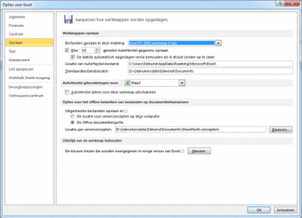 Wisselt u veel bestanden uit met mensen die een oudere versie van Microsoft Office of zelfs een alternatief office-pakket gebruiken, dan is het aan te bevelen om ze niet de Office 2010-bestanden te sturen. Nog niet alle functies daarvan worden door de concurrenten ondersteund. U kunt telkens een bestand bewust in een oudere versie opslaan, maar is dit een standaardhandeling voor u dan kunt u het zich gemakkelijk maken en bijvoorbeeld Word of Excel standaard in het oude bestandsformaat laten werken. Open via Bestand, Opties, Opslaan de opties voor het opslaan van Office-documenten. Kies bij Bestanden opslaan in deze indeling voor bijvoorbeeld Excel 97-2003-werkmap, om maximale compatibiliteit bij het uitwisselen van bestanden te waarborgen.