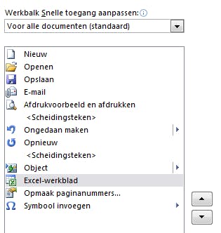 Bepaal zelf de indeling van de werkbalk Snelle toegang.