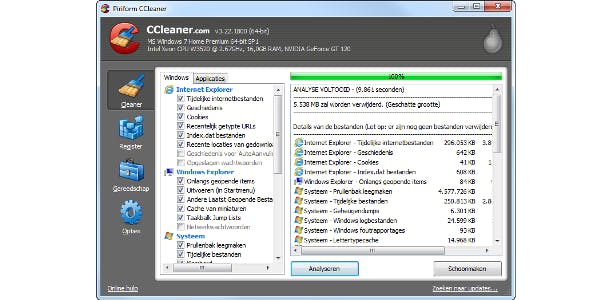 Met CCleaner kun je de computer voor het kopiëren een flinke schoonmaakbeurt geven.