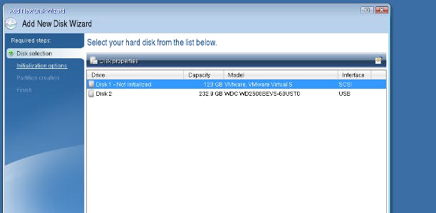 Gebruik de optie Add New Disk om de SSD te initialiseren.