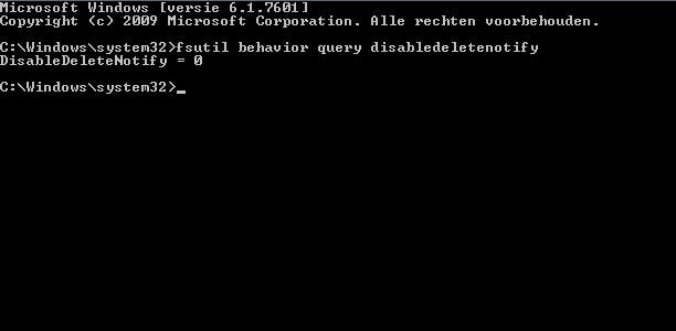 Gebruik de opdracht fsutil behavior query disabledeletenotify, om te zien of TRIM is ingeschakeld.