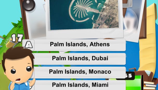 Aardrijkskunde Quiz Spel 3D is een fraaie app om je geografische kennis mee op te krikken. Een meerkeuzevraag bestaat meestal uit een foto waarbij je uit vier antwoorden de juiste plek kiest. Door goede antwoorden aan te wijzen, maak je een virtuele rondreis over de wereld. Wie als eerste de rondreis voltooit, wint het spel. Leuk is dat je via allerlei trucjes de voortgang van online tegenstanders kunt dwarsbomen.