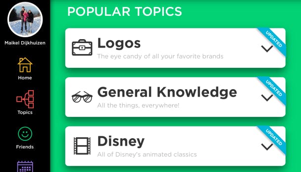 Wie een quiz zoekt met vragen over zeer gevarieerde onderwerpen, zal veel plezier beleven aan QuizUp. In deze app zijn namelijk talloze Engelstalige vragen over honderden onderwerpen gehuisvest. Interessant is dat de makers regelmatig nieuwe categorieën toevoegen die momenteel relevant zijn, zoals afgelopen zomer het WK Voetbal 2014. Je speelt één tegen één, waarbij je een vriend of willekeurige speler uitdaagt. Dankzij de prachtige vormgeving van deze app is dit spel extra leuk om te spelen.