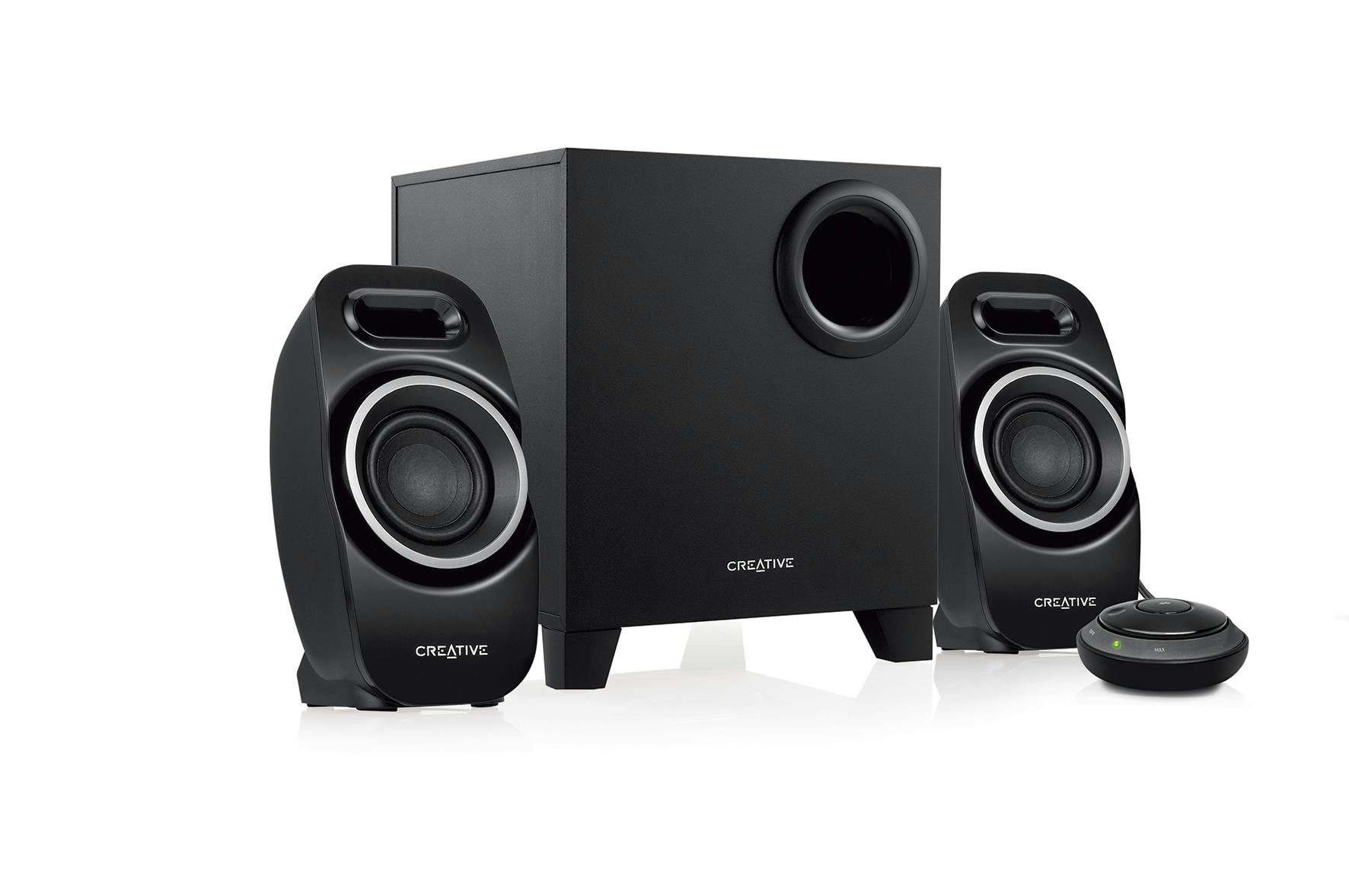 De derde set van Creative is heel wat anders dan de andere twee setjes. Deze zeer compacte 2.1-speakers zijn al voor iets meer dan vijftig euro te vinden, maar doorgaans zal er zo’n zeventig euro voor gevraagd worden. Ook de T3250 Wireless kan via bluetooth van een signaal worden voorzien, maar dan alleen via de standaard SBC-codec. Die is kwalitatief duidelijk minder dan Apt-X, maar wordt wel universeel ondersteund. Vervelend is dat de satellieten vastzitten aan de subwoofer en de kabels niet bijzonder lang zijn. Een extra ingang is niet aanwezig, een eenvoudige bedrade afstandsbediening is er wel.