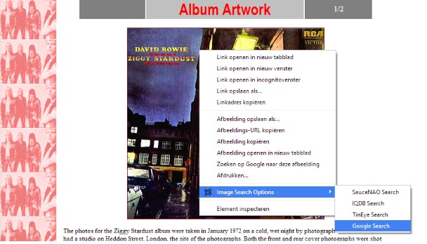 Voor bekende foto's helpt de Image Search Options-extensie. Klik met de rechtermuisknop op een afbeelding en kies Image Search Options / Google Search. De afbeelding zelf wordt als zoekopdracht gebruikt in de afbeelding-zoekfunctie van Google. Image Search Options ondersteunt ook andere 'beeldzoekers' waarvan TinEye de bekendste (en misschien wel beste) is.