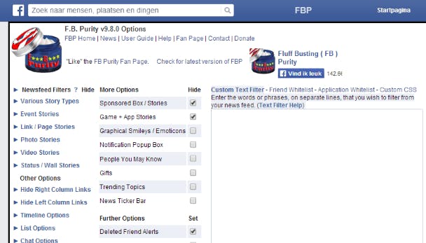 Schakel met F.B. Purity bijvoorbeeld de gesponsorde links uit en voorkom meldingen van apps of spelletjes. Je kunt zelfs de verjaardag van je Facebook-vrienden van je scherm poetsen en de chat-functie uitschakelen. F.B. Purity is vanwege de stortvloed van instellingen minder gebruiksvriendelijk, waardoor het even tijd kost om de mogelijkheden te begrijpen en uit te proberen. Neem je deze tijd? Dan is een overzichtelijkere Facebook-pagina zonder onderdelen die je niet gebruikt het eindresultaat!