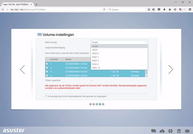 Behalve zelf de RAID-configuratie te bepalen, kun je het ook aan de NAS overlaten.