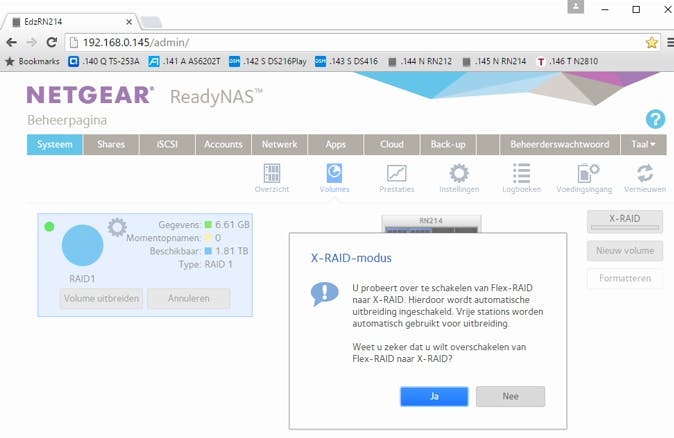 Het eerste wat opvalt bij NETGEAR is de uitstekende bouwkwaliteit van de NAS-behuizing, zowel bij de NAS met twee als die met vier schijven. Beide modellen beschikken nu bovendien over twee LAN-poorten met de mogelijkheid voor link-aggregatie. De 214 heeft ook een kleine display waarop je systeemmeldingen en informatie zoals het IP-adres van de NAS afleest. Dit is erg handig. Versie 6.4 van het ReadyNAS OS is gebruiksvriendelijk, maar ook wat saai.