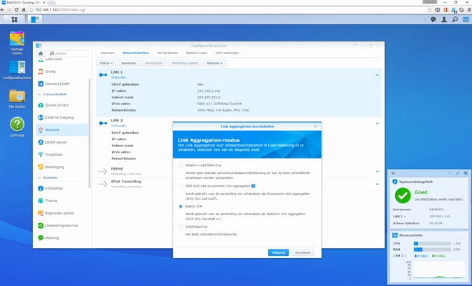 Elke NAS beschikt over minimaal één gigabit-LAN-poort. Zijn het er meer (twee of vier komen voor in de test), dan kun je die gebruiken om de NAS met meerdere netwerken te verbinden of om via link-aggregatie van twee netwerkverbindingen één heel snelle te maken. Hiervoor is het wel belangrijk dat ook de switch of router waarop de NAS wordt aangesloten dit ondersteunt.