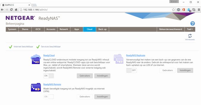 Een paar klikken en een account aanmaken en je kunt overal ter wereld gegevens uploaden en downloaden van de NETGEAR ReadyNAS.