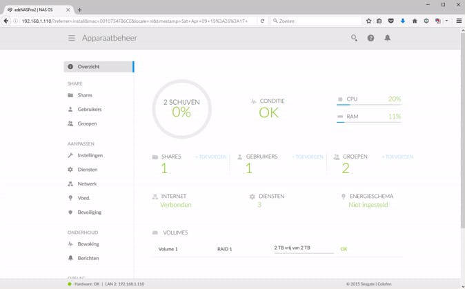 Het besturingssysteem voor de Seagate NAS-apparaten is mooi en erg overzichtelijk.