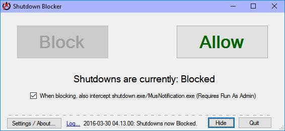 Oeps … je computer gaat weer eens opnieuw opstarten. Soms ben je zelf de schuldige omdat je te snel met je muis op iets als ‘deze computer wil opnieuw opstarten’ hebt geklikt en een ander keer is Windows Update de boosdoener. Dankzij ShutdownBlocker behoort dit tot de verleden tijd. ShutdownBlocker blokkeert de opdracht om opnieuw op te starten en je pc uit te schakelen. Zo kun je fijn verder werken tot je er bewust voor kiest om je systeem af te sluiten of opnieuw te starten. Zodra je ShutdownBlocker start, is de blokkade automatisch actief. Maak deze ongedaan met de knop Allow en weer actief met de knop Block. Het is aan te raden om ShutdownBlocker automatisch te starten met Windows, dan heb je er geen omkijken meer naar. Klik op Settings en plaats een vinkje bij Activate with Windows.
