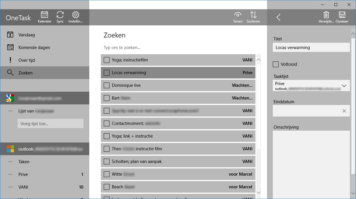 Gebruik je meerdere (web)diensten waar je taken kunt bijhouden? Dan is One Task een aanrader! De Windows 10-app ondersteunt alle bekende taakdiensten. De taken worden samengevoegd in één overzicht. Uiteraard worden alle instellingen gesynchroniseerd met de online diensten: je kunt dus alles door elkaar gebruiken. One Task ondersteunt taken uit Outlook, van Office 365 en via Google Tasks. Ook de taken uit de nieuwe Microsoft-dienst To-Do komen keurig in het One Task-overzicht terecht zodra je je Microsoft-account koppelt.