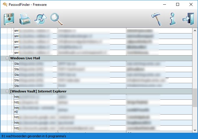 Heb je een wachtwoord nodig dat je ooit hebt gebruikt op je computer? De kans is groot dat Magical Jelly Bean PasswdFinder het terugvindt! Dit klinkt eng en dat is het ook, maar het werkt wel. Start Magical Jelly Bean PasswdFinder en wacht af. Het programma zoekt en toont alle aangetroffen inlog-informatie in een overzicht. Naast wachtwoorden uit je browsers weet Magical Jelly Bean PasswdFinder ook wachtwoorden te achterhalen van mailprogramma’s. Dit werkt dusdanig grondig dat we zelfs wachtwoorden terugvonden uit Windows Live Mail dat al jaren niet meer aanwezig was op onze testcomputer. Ook de inloggegevens uit verwijderde Thunderbird-accounts werden gevonden.