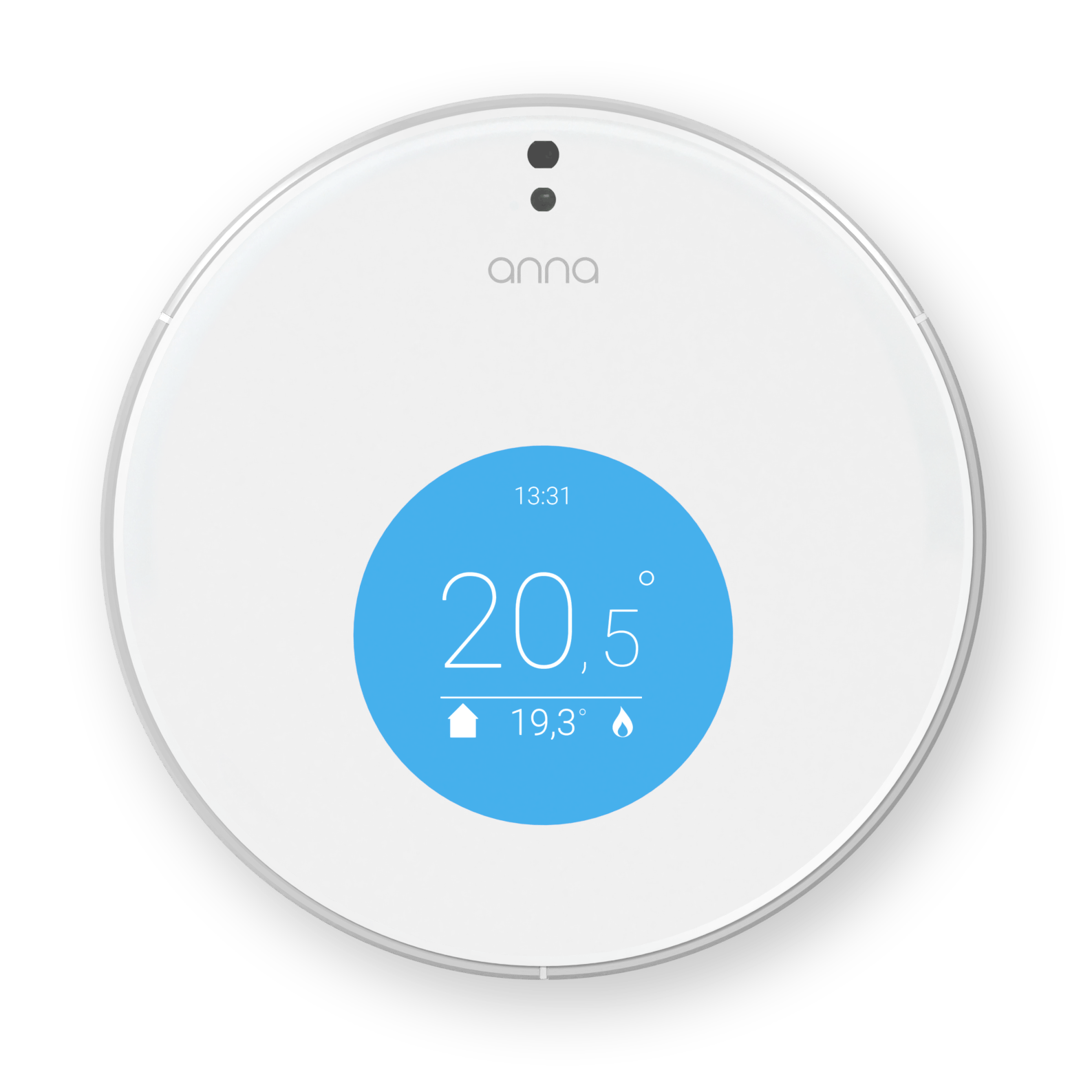 De Anna is bekend van de Nederlandse Energie Maatschappij waar je hem kunt huren, maar hij is ook los te koop zonder verdere kosten. De Anna sluit je via een ketelmodule aan, die ook de verbinding met je draadloze netwerk verzorgt. Voor Anna hoef je geen account aan te maken, je maakt in de app verbinding met een code die je op de ketelmodule vindt. De ronde thermostaat is vervaardigd uit wit kunststof met daaromheen een metalen ring, het scherm springt aan als je voor de thermostaat staat. De ring is verdeeld in drie gedeeltes die dienstdoen als aanraakgevoelige knoppen om de temperatuur te wijzigen en te schakelen tussen de diverse aanwezigheidstanden.