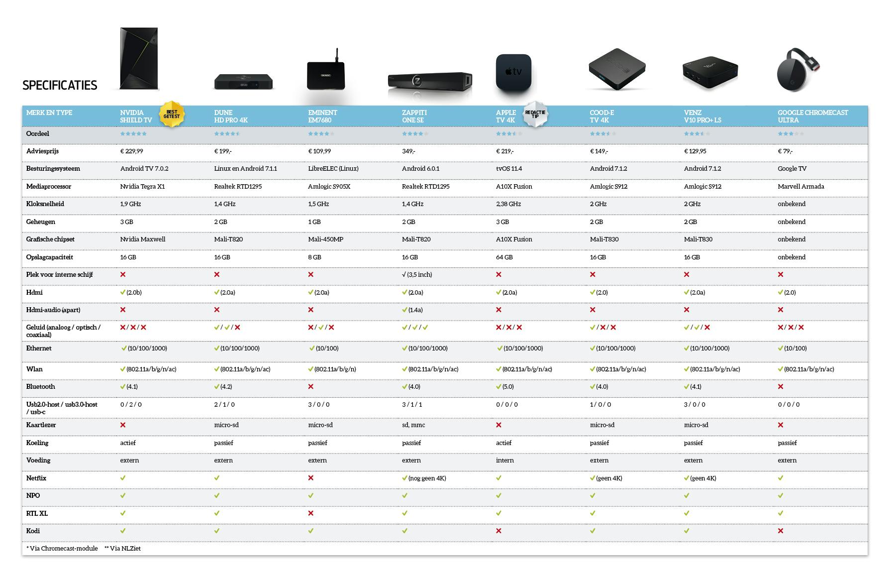 Moderne mediaspelers vormen een interessant alternatief voor de verouderde smartomgeving en matige bestandsondersteuning van smart-tv’s. Zo bestaan er allerlei afspeelapparaten die alle gangbare audio- en videocodecs verwerken, inclusief films in 4K. Die passeren in deze vergelijkende test de revue. Diverse besproken spelers hebben zelfs een eigen smartomgeving die up-to-date blijft, zodat je Netflix in de hoogste kwaliteit kunt streamen!