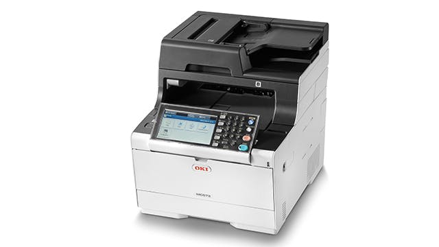 OKI richt zich met zijn printers en multifunctionals vooral op professionele gebruikers en bedrijven. De MC573dn is een instapmodel in de alles-in-een-productreeks, bedoeld voor thuiswerkers en kleine tot middelgrote thuiskantoren of werkgroepen met één tot twintig of meer gebruikers. Verhoudingsgewijs is dit een groot en zwaar apparaat, dat toch nog op een flinke gewone werktafel past. Je hebt wel twee personen nodig om het uit de verpakking te halen. Deze printer is op de Canon na de stilste binnen deze groepstest. Je kunt de stille modus activeren; dan werkt hij trager, maar nog stiller.