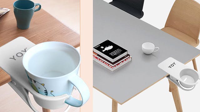 Met deze handige bekerhouder voor de echte koffiegenieter, genaamd YOY Drink Holder, kun je je goedje nooit meer omstoten. De houder klip je eenvoudig aan de rand van je bureau of tafel en heeft ruimte voor diverse maten bekers en kopjes tot een diameter van 7,5 cm. Geschikt voor een bureau- of tafeldikte tot 4 cm. Wel zorgen dat hij ver genoeg vanaf je armen is gepositioneerd, anders gaat het alsnog mis, maar de kans dat je je kopje of beker uit de houder stoot is wel erg klein.