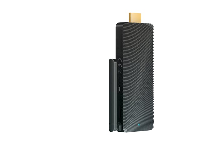 Een groot nadeel is dat de Compute Stick slechts één usb-poort bevat. Wanneer je een toetsenbord en muis met deze mini-pc verbindt via een draadloze usb-adapter, is er dus geen plek meer om een externe harde schijf met mediabestanden aan te sluiten. Een uitweg is door een bedieningsapparaat via bluetooth te verbinden of de mobiele bedienings-app van Intel op je smartphone te installeren. Je verbindt deze HDMI-stick via wifi met het netwerk. Vanwege deze eigenschap is de Compute Stick niet zo geschikt als streamer. De kans is namelijk groot dat videobestanden gaan stotteren wegens te weinig bandbreedte en interferentie. In tegenstelling tot de NEXXT PC Stick is deze mini-pc aan de bovenzijde voorzien van een ventilator om de warmte af te voeren. Zodra de ventilator aanslaat is dat duidelijk te horen. De prijs van dit Intel-product is interessant, zeker als je bedenkt dat je voor dit geld een volwaardige mini-pc tot je beschikking hebt. Verder is het fijn dat de fabrikant een jaarlicentie van McAfee-antivirussoftware heeft toegevoegd.