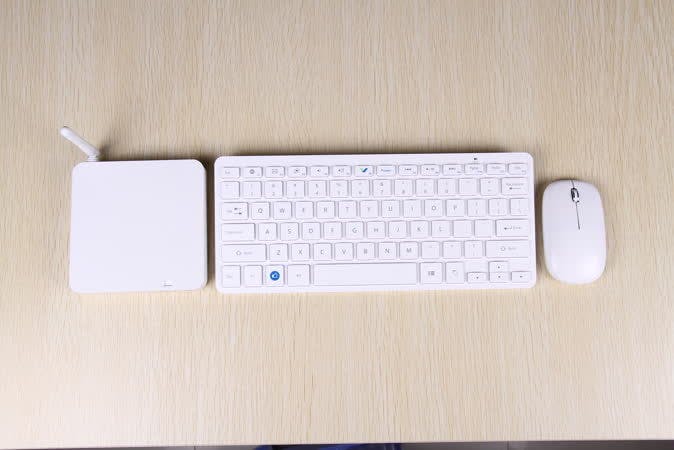 De EZTV3 is een ietwat vreemde eend in de bijt. De fabrikant van deze witte mediaspeler levert dit exemplaar inclusief muis, toetsenbord en afstandsbediening. Alles werkt op een radiofrequentie van 2,4 GHz, waardoor je de mediaspeler ook in een kastje kunt wegwerken. Verder valt op dat het voorpaneel een 2megapixel-camera bevat. Handig voor als je wilt webcammen via een app als Skype. Hiervoor is er in zowel de muis als afstandsbediening een microfoon ingebouwd.