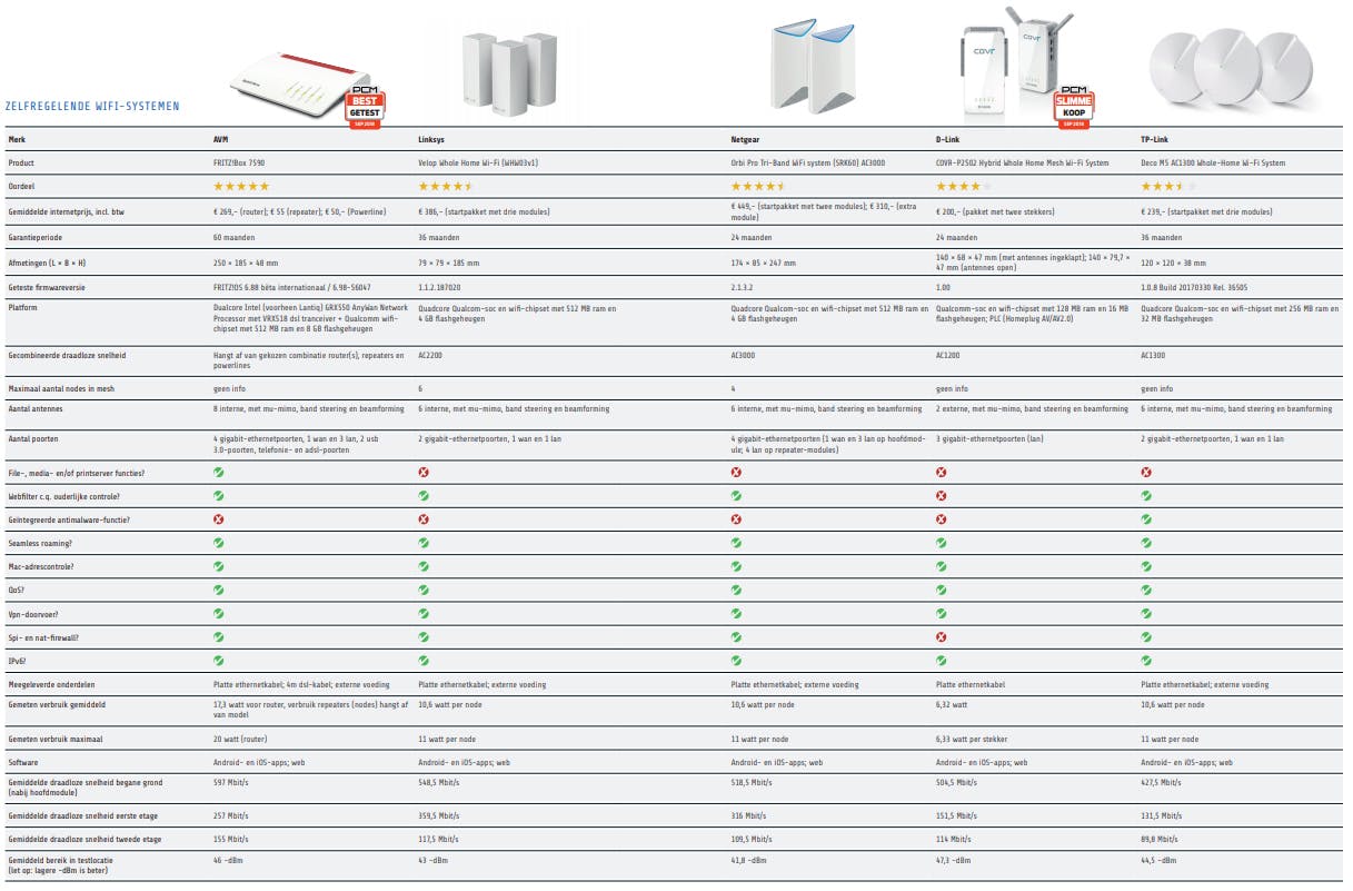 Knoeien met routers, wifi-extenders en/of powerline-oplossingen behoort met deze zelfregelende wifi-systemen definitief tot het verleden. Updates gebeuren automatisch en voegen functies en snelheid toe. Het product van AVM krijgt het keurmerk Best Getest: het werkt het snelst en biedt de uitgebreidste configuratiemogelijkheden.