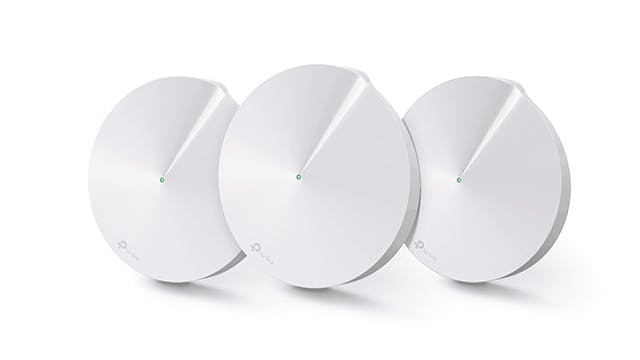 Het TP-Link Deco M5 AC1300 Whole-Home Wi-Fi System is opvallend goedkoper dan de andere geteste oplossingen. Het gebruikt een wifi-chipset van Qualcomm met een iets minder krachtige configuratie. De startkit bevat drie modules, met een even mooi ivoorwit design als de drie Velop-nodes. Het belangrijkste verschil is dat de Deco-modules er als platte schijven en niet als torentjes uitzien. Deze ufo-achtige schijven ogen daardoor iets discreter, maar de Deco-nodes bevatten ook minder antennes dan de Velop-torentjes, namelijk vier in plaats van zes.