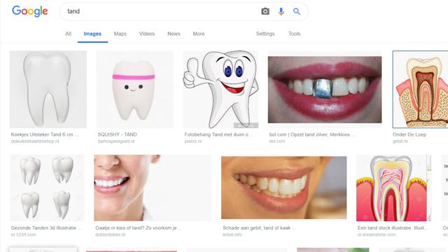 Bovendien heeft een systeem heel veel foto’s van eenzelfde ding nodig om het feilloos te kunnen herkennen. Nu kun je daarvoor wel op Google Images gaan zoeken, maar die database zal niet helemaal accuraat zijn. Zoek bijvoorbeeld eens op ‘tand’. Binnen twintig afbeeldingen heb je al een foto van een kind met een kapotte lip, zonder dat hierop een tand te zien is (tand door de lip).
