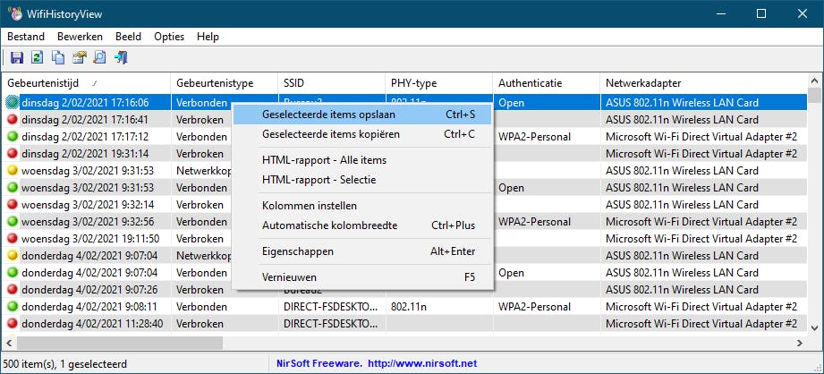 Een leuke tool is ook WifiHistoryView. Die toont je direct na het opstarten in één oogopslag alle draadloze verbindingen die je pc of laptop de laatste tijd al heeft gemaakt. Je ziet precies wanneer die verbinding is gemaakt, hoelang die duurde en waarom die eventueel werd afgebroken.