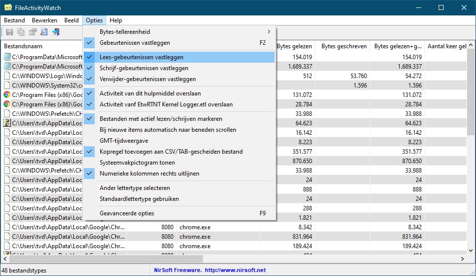 Wil je weten welke programma’s of processen welke bestanden benaderen? Bijvoorbeeld tijdens de installatie van een toepassing of omdat je schijfactiviteit opmerkt die je niet meteen kunt verklaren? Daar heeft NirSoft twee verwante tools voor, eerst behandelen we FileActivityWatch.