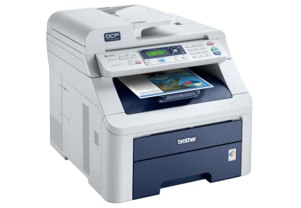 De Brother DCP-9010CN is eigenlijk geen laserprinter, maar een led-printer. De afdruktechnologie is hierbij gebaseerd op leds die de drum verlichten, in plaats van dat een laser dat doet. Het heeft als voordeel dat de printer minder bewegende delen bevat ten opzichte van traditionele laserprinters. Verder lijkt een led-printer erg veel op een laserprinter: er wordt toner gebruikt en de afdrukkwaliteit is vergelijkbaar. De printer komt robuust over en ziet er zakelijk uit. Het uiterlijk is met een schuine hoek apart, maar we kunnen het wel waarderen. De toners zijn eenvoudig te vervangen: als u de klep opent, hebt u direct toegang. Wat opvalt is dat afdrukken in conceptkwaliteit trager is dan in normale kwaliteit. Op de afdrukkwaliteit van tekst hebben we niets aan te merken, maar de afdrukkwaliteiten in kleur zijn matig. Er zit een sterke groengele kleurzweem in de foto’s, waardoor bijvoorbeeld huidtinten erg geel lijken. Ook de scherpte kan beter en we vinden de afdruk wat streperig. Deze printer is dus totaal niet geschikt voor foto’s, maar is wel inzetbaar om zakelijke rapporten af te drukken. De DCP-9010CN is niet uitgerust met een fax of wifi. Toch vertaalt dit zich niet in een lage prijs. Afgezien van de printer van Lexmark is dit het duurste apparaat in de test. De DCP-9010CN is wel een handig apparaat als u de printer met meerdere mensen tegelijk gebruikt want u kunt afdrukken beveiligen met een pincode. Hierdoor rolt een document alleen uit de printer als u de zelfgekozen pincode op het apparaat ingeeft.