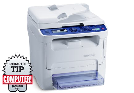 De Xerox 6121MFPV/N is de goedkoopste printer uit de test en heeft een gemiddelde straatprijs van zo’n 265 euro. De behuizing is op zich mooi, al is de uitstekende papierbak minder fraai. Ondanks de lage prijs is de afdrukkwaliteit van de printer goed en de kleuren zien er prima uit. Wel zijn de afdrukken een beetje streperig, en zijn de kosten per pagina bij kleurenafdrukken het hoogste van de geteste printers door de relatief dure toners. Het stuurprogramma heeft een optie voor tonerbesparing die helaas niet werkt. Nadat we de functie inschakelen, blijkt de instelling vanzelf weer terug te springen naar de normale modus. We zien logischerwijs dan ook geen verschillen in de afdrukken die we hierna maakten. Opvallend is dat het afdrukken van een grafisch ingewikkelder document langer duurt dan een document met enkel tekst. Als we tekst afdrukken begint het apparaat direct te printen na het pakken van papier uit de papierlade. Wanneer we een afbeelding afdrukken, dan wordt er een seconde of drie gewacht nadat een blaadje uit de papierbak is gehaald voordat het afdrukken daadwerkelijk begint. Scant u veel dikke zaken als boeken, dan is het lastig dat het deksel van de scanner niet extra ver omhoog kan. Bij de andere printers in deze test kan dat wel. De 6121MFPV/N is uit te breiden met een optionele duplex unit, waarmee automatisch dubbelzijdig afdrukken mogelijk wordt. Het apparaat is ook in combinatie met de duplex unit te koop onder het typenummer 6121MFPV/D. De straatprijs is met een gemiddelde prijs van 383,79 euro dan nog steeds erg bescheiden.