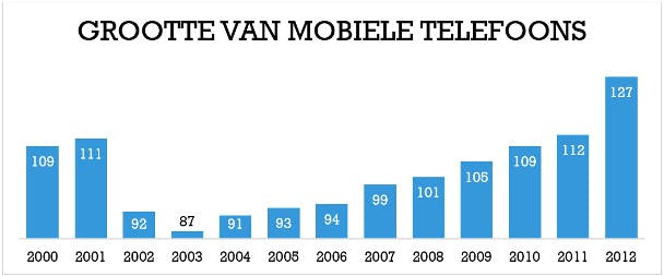 Mobiele telefoons hebben de afgelopen jaren grote veranderingen doorgemaakt. Begin 2000 waren ze over het algemeen nog vrij groot, en vanaf 2002 was credo juist "hoe kleiner, hoe beter". Deze trend heeft een paar jaar doorgezet. Langzaam werden de toestellen echter weer steeds groter. Vooral in 2012 is er een flinke omslag te zien in het gemiddelde formaat van de beschikbare mobiele devices. Tegenwoordig is het credo vooral "hoe groter, hoe beter".