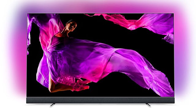 Naast Loewe ontwikkelt ook TP Vision (onder licentie van Philips) oledtelevisies met een geïntegreerde soundbar. Het 2.1-kanaals-audiosysteem van deze 55OLED903 komt uit de koker van het gerenommeerde audiomerk Bowers & Wilkins. Het totale uitgangsvermogen bedraagt volgens de fabrikant 50 watt. De beeldbuis bevat de welbekende Ambilight-verlichting, waarbij led-lampjes langs de randen de televisiekleuren op de achterliggende muur tonen. Als beeldprocessor gebruikt Philips nog altijd de P5-chip.