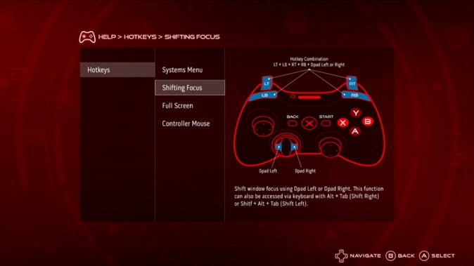 Je kunt de televisieschil bedienen met de Xbox-controller.