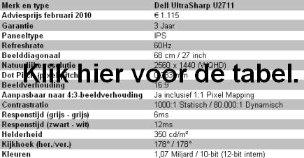 Dell zet met de U2711 een heel bijzonder 27inch-scherm op de markt met een forse resolutie van 2560 x 1440. Alleen de iMac komt wat schermgrootte betreft hierbij in de buurt. Maar uiteraard is de iMac wel een complete computer. De U2711 is dan ook uniek te noemen.