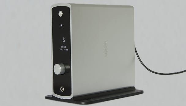 De DAC heeft een vrij groot formaat. Met de zwarte glazen voorkant en de zilverkleurige behuizing ziet hij er gelukkig wel erg mooi strak uit. Helaas is de zilverkeurige behuizing wel helemaal van plastic, waardoor hij redelijk snel gaat krassen. Deze Denon wordt geleverd met een standaard waar je de DAC eenvoudig in kunt schuiven. Hierdoor kan je hem dus ook staand neerzetten.