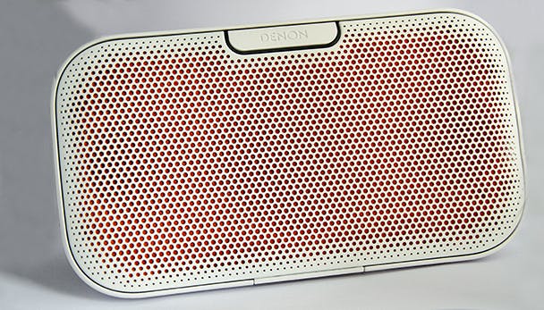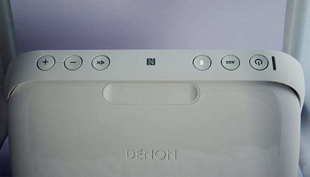 De eerste indruk die je krijgt zodra je de Denon Envaya uit de doos haalt is dat hij voor een draagbare speaker vrij groot en lomp aan doet. Een lichtgewicht is het trouwens ook niet: de speaker weegt bijna anderhalve kilo. Zeker de witte variant ziet er ook niet heel erg mooi uit. Hij doet een beetje denken aan een speaker die is ontworpen om onder de douche te gebruiken. De speaker is niet lelijk, maar zal zeker geen schoonheidsprijs winnen. Gelukkig is dat niet de zwaarst wegende factor voor een speaker.