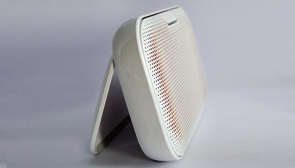 De speaker doet groot en lomp aan. Licht is hij ook niet: bijna anderhalve kilo.